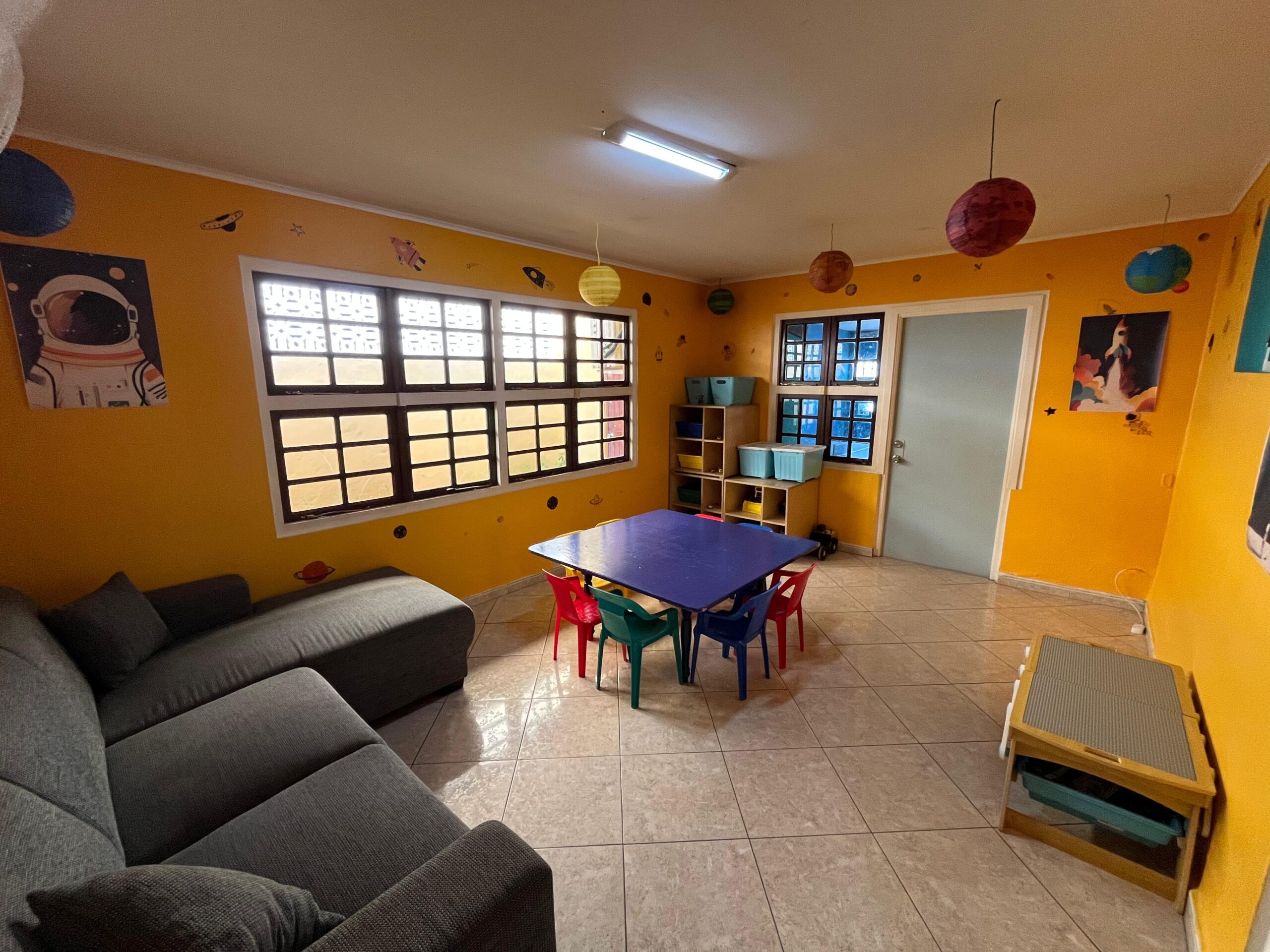 Onze locatie bestaat uit ruim 400 m2 binnenruimte, waar we verschillende kamers hebben ingericht waar de kinderen zich kunnen vermaken tijdens de middag. De gehele binnenruimte is voorzien van airco en bestaan uit de volgende kamers;